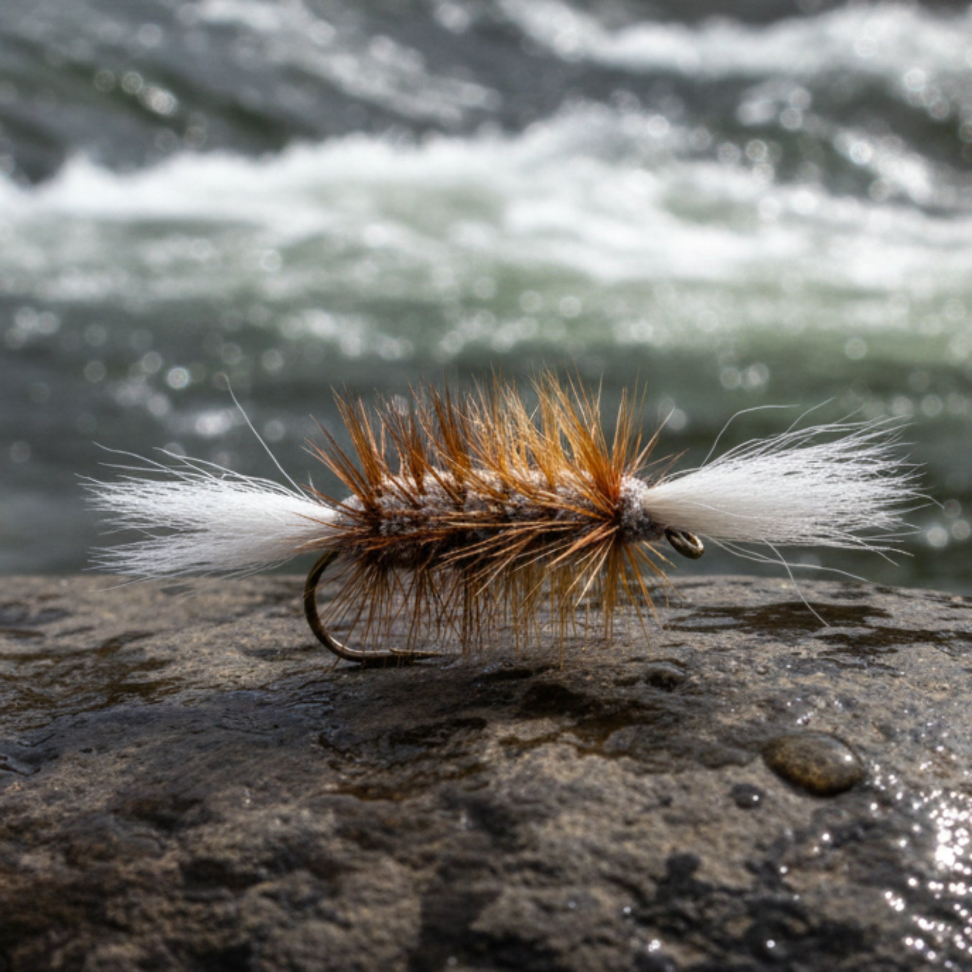 The brown hackle provides a more muted, lifelike appearance—ideal when fish are cautious or water conditions are clear—while the white wing ensures you maintain visual contact throughout the drift.