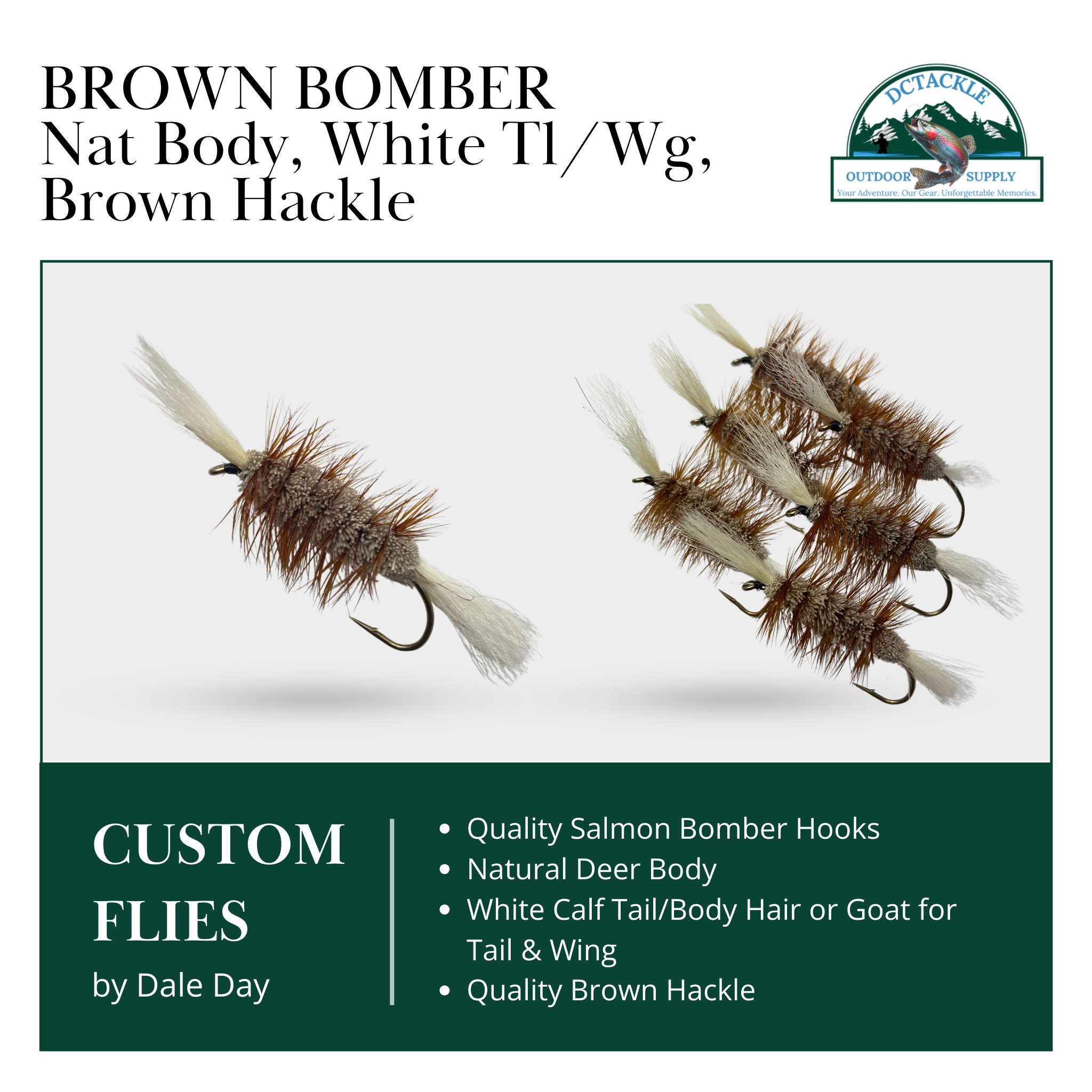 Atlantic Salmon Dry Fly, Deer Hair Bomber, Natural Body, Wht. Tl & Wg/Brown Hackle