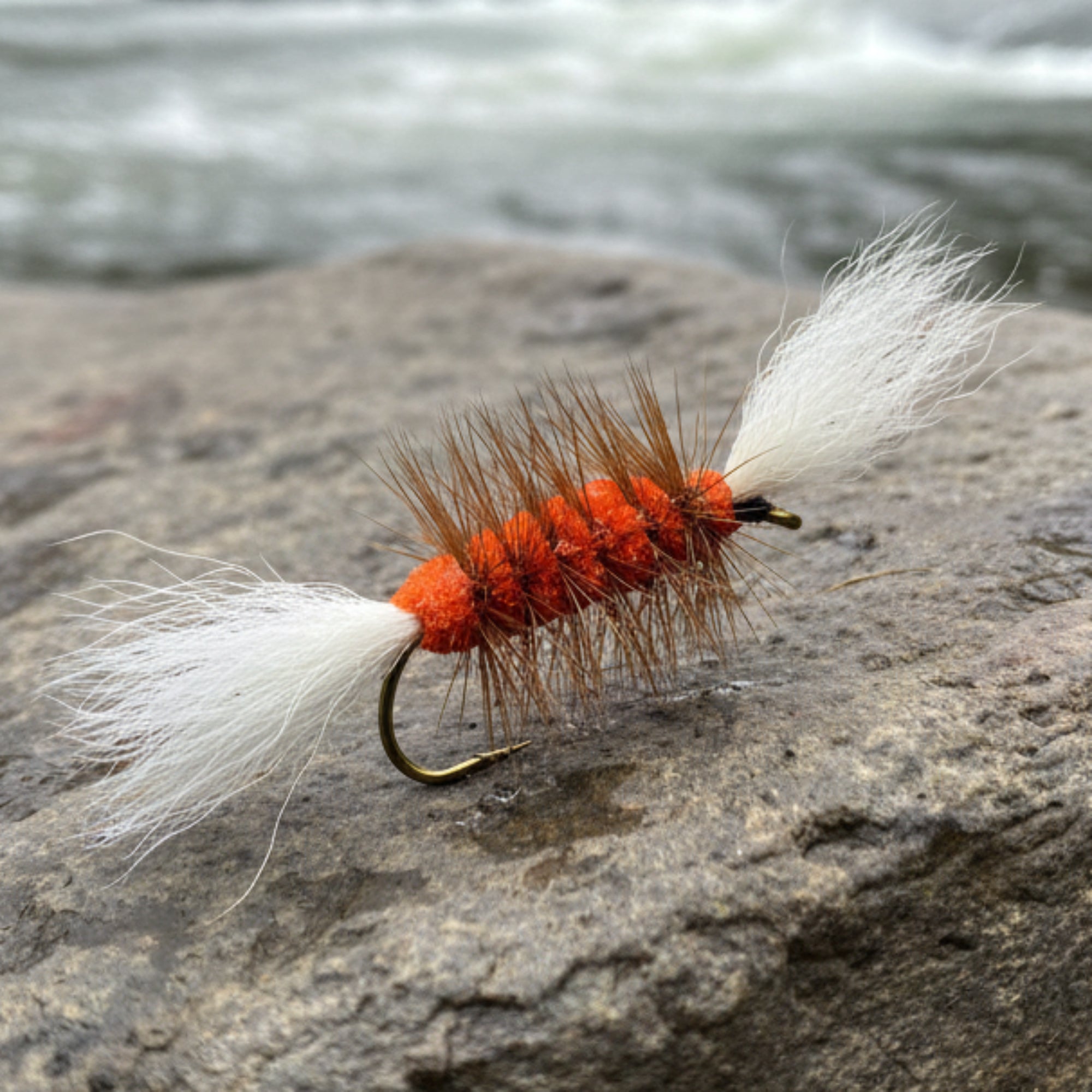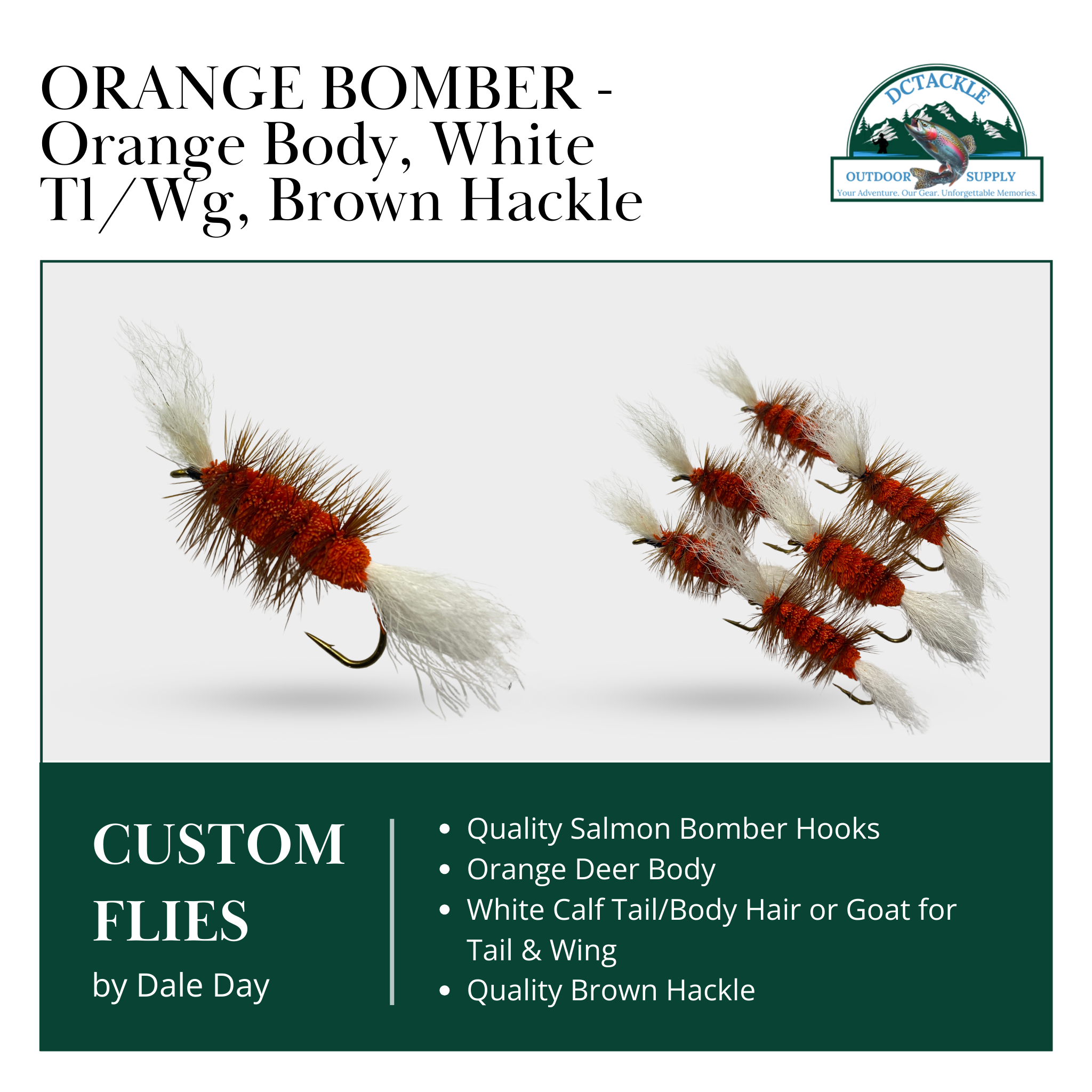 When visibility and surface disturbance matter most, this Atlantic Salmon Bomber delivers. Featuring a bold orange deer hair body, paired with a white tail and wing and finished with a natural brown hackle, this pattern is built to stand out and provoke aggressive takes from surface-oriented fish.
