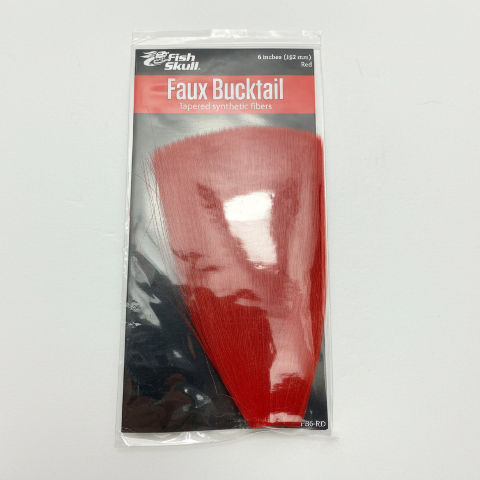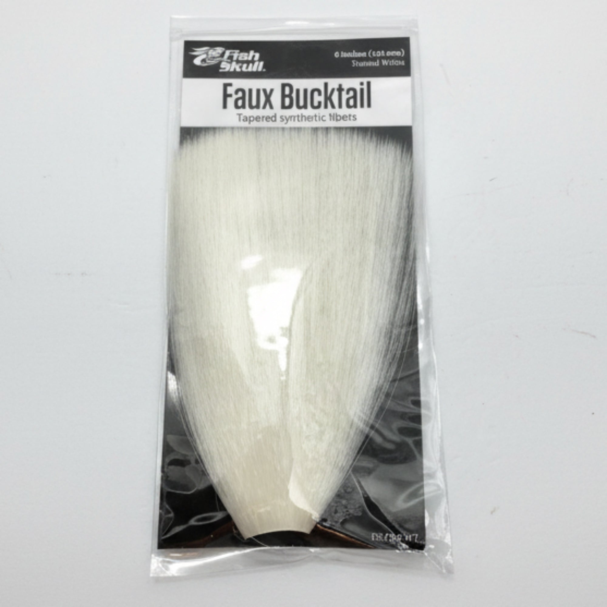 Fish-Skull Faux Bucktail fibers have the same basic diameter, gentle crinkle, and taper as natural bucktail. In appearance, it looks almost identical and has the same distinctive bucktail fly or lure action in the water. However, the fibers are not hollow (which helps your fly sink faster) and will not “flare” in the same way as regular bucktail while tying. This means you will need to tie with slightly different techniques to achieve the same effect.